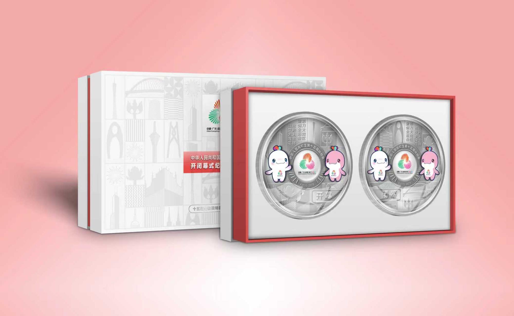 纪念银盘套装一套2枚,重560克,零售价为15800元。这套纪念银盘,不仅是全运开闭幕盛况的艺术凝聚,更是粤港澳文化融合与体育精神的永恒见证,堪称一件铭刻时代盛事的贵金属艺术珍品。