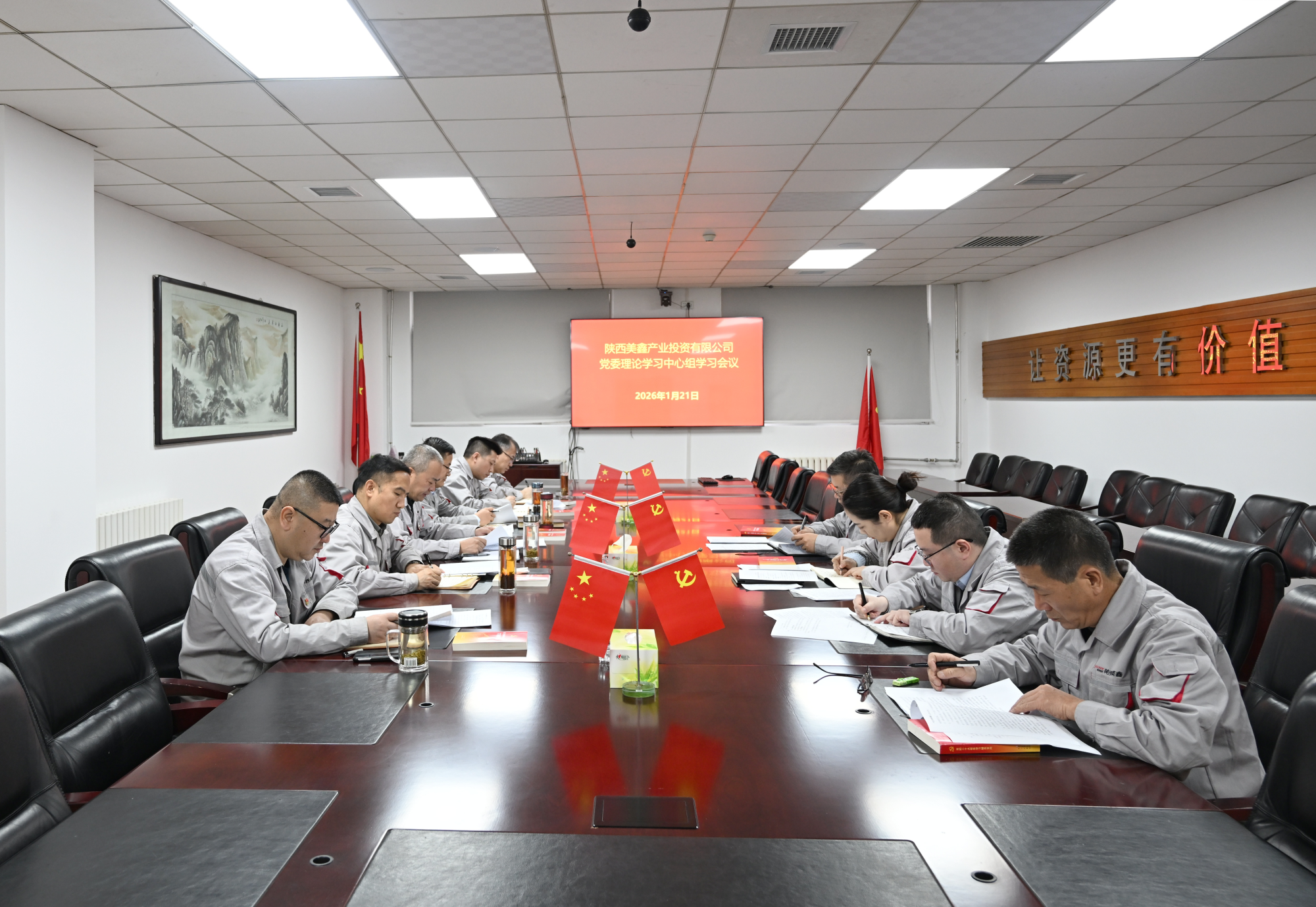 1月21日,美鑫公司党委召开理论学习中心组2026年第一次学习会议,集中学习习近平总书记在中共中央政治局民主生活会上的重要讲话精神、《求是》杂志发表的习近平总书记重要文章《学习好贯彻好党的二十届四中全会精神》及全国矿山安全生产工作会议精神、省委经济工作会议精神等内容。