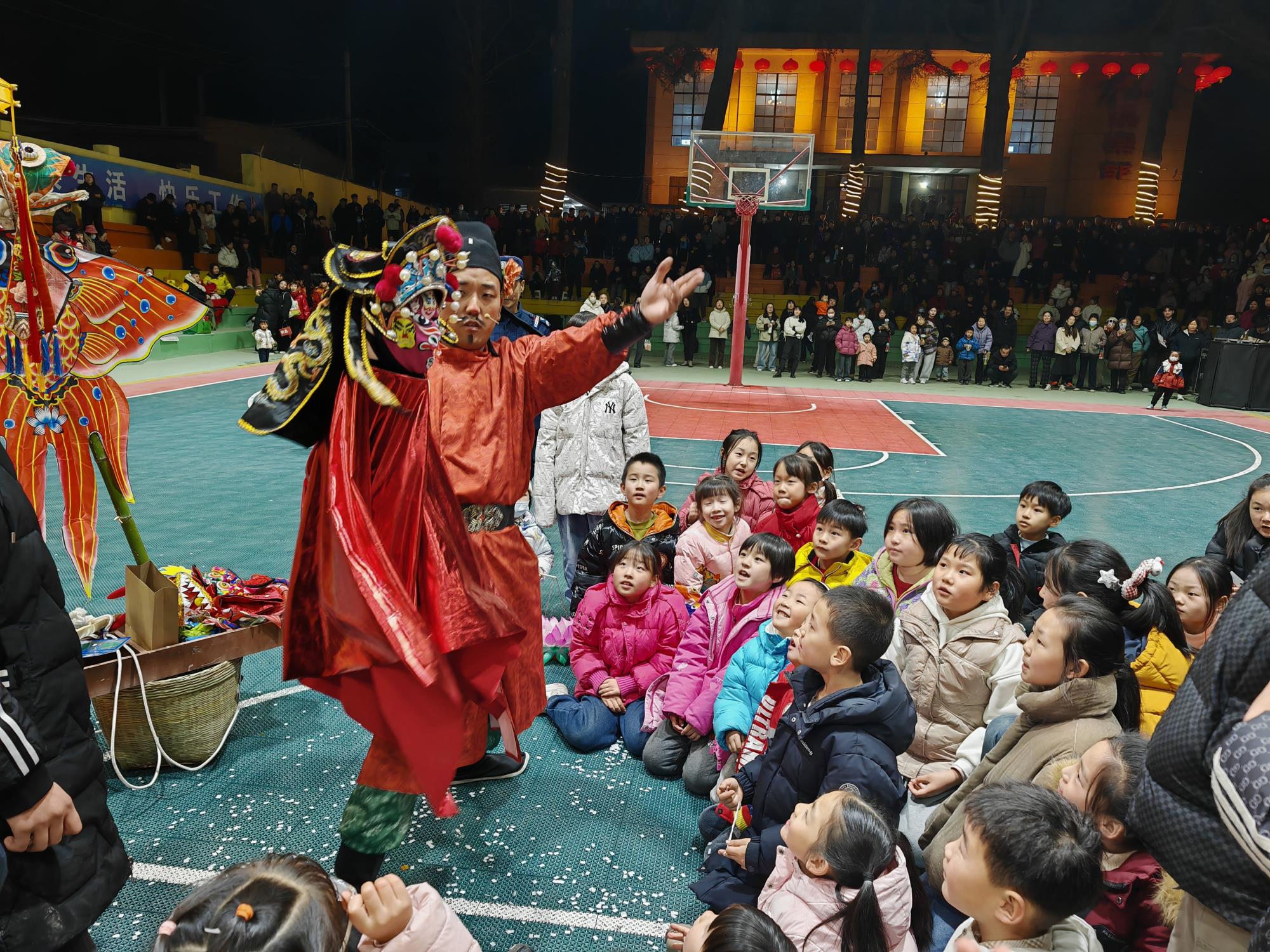 晚上7点,宝钛老区灯光球场华灯璀璨、人潮涌动,元宵游园活动在喜庆欢快的舞蹈《开门红》中正式拉开帷幕。气势磅礴的《彩龙舞东方》惊艳登场,飞天龙灯在夜空中盘旋升腾,瞬间点燃全场热情;刚柔并济的《太极表演》行云流水,尽显宝钛人干事创业张弛有度、步履铿锵的精神风貌;舞蹈《盛世欢歌》《舞动钛城》节奏明快、活力四射,生动展现钛城儿女昂扬向上、奋发有为的时代风采;紧接着登场的舞龙表演腾跃穿梭、气势如虹,将现场氛围一次次推向高潮;古韵十足的《大唐百戏》妙趣横生,带领观众沉浸式穿越市井繁华;两只醒狮腾挪跳跃、威武灵动,与现场观众热情互动、纳祥送福,最终狮口吐幅——“恭喜发财 万事腾意”的美好祝福引发全场阵阵欢呼。