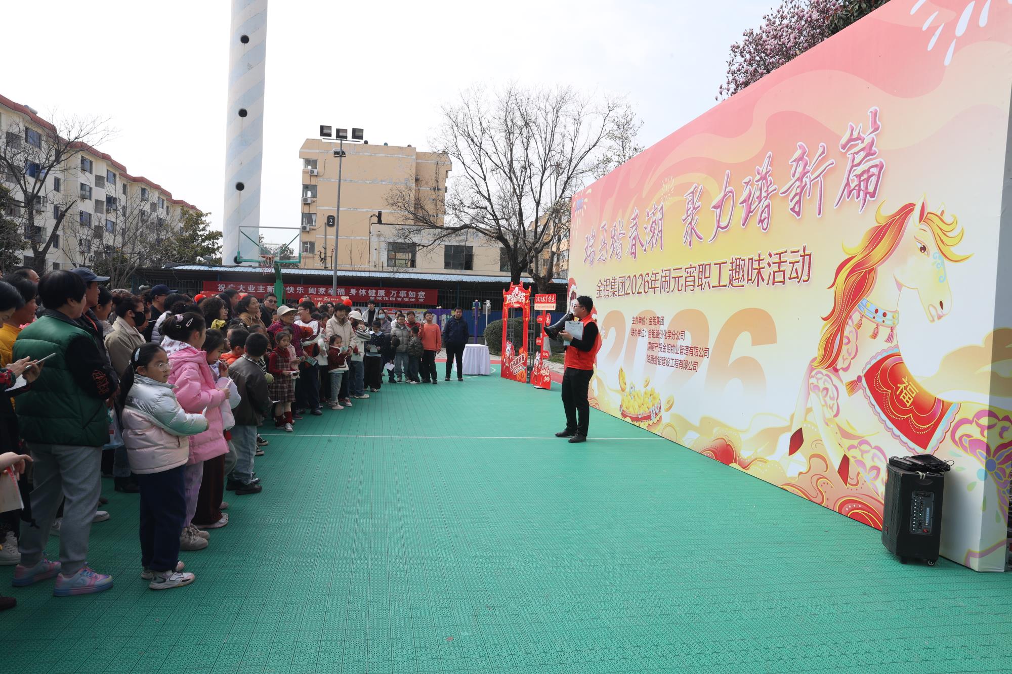14时30分,活动在主会场——金城花园篮球场正式拉开帷幕。本次活动创新采用“打卡集章”的游园形式,共设置了八大趣味游戏和一个灯谜竞猜专区。所有项目均巧妙融入“马”年元素,现场成了一片“马”的欢乐海洋。